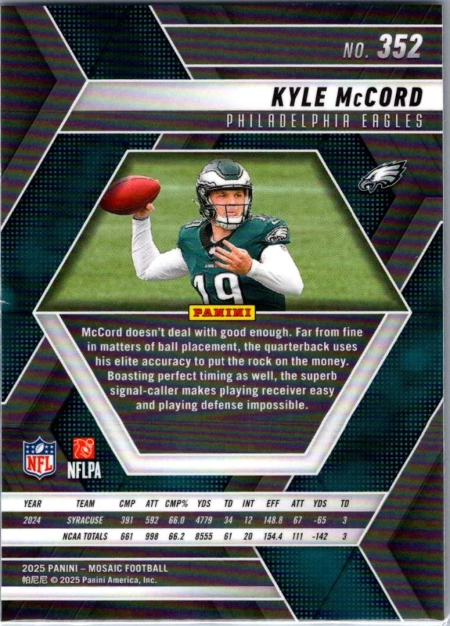 This is a nice example of a 2025 Panini Mosaic #352 Kyle McCord