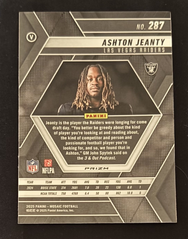 2025 Panini Mosaic Ashton Jeanty Rookie Image Variation Honeycomb Prizm SP