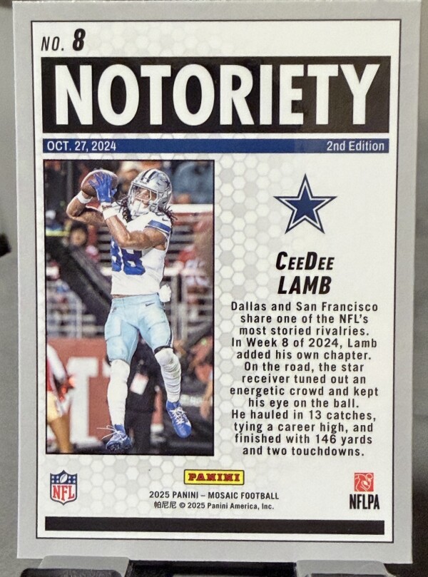2025 Panini Mosaic Notoriety CeeDee Lamb #8 Mosaic Prizm