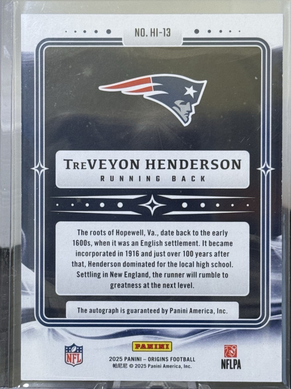 2025 Panini Origins TreVeyon Henderson Hometown Inscriptions /25