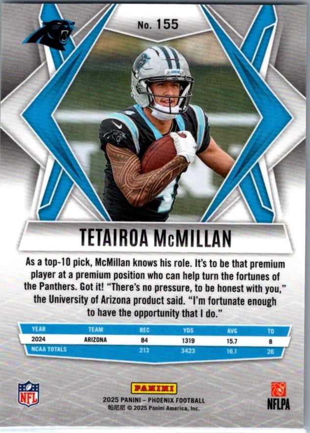 This is a nice example of a 2025 Panini Phoenix #155 Tetairoa McMillan