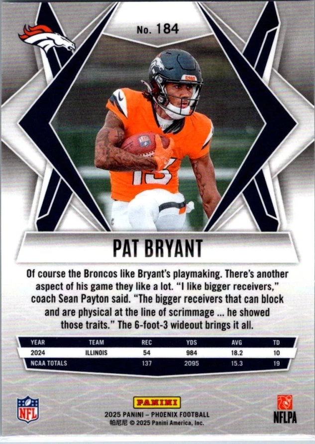This is a nice example of a 2025 Panini Phoenix #184 Pat Bryant