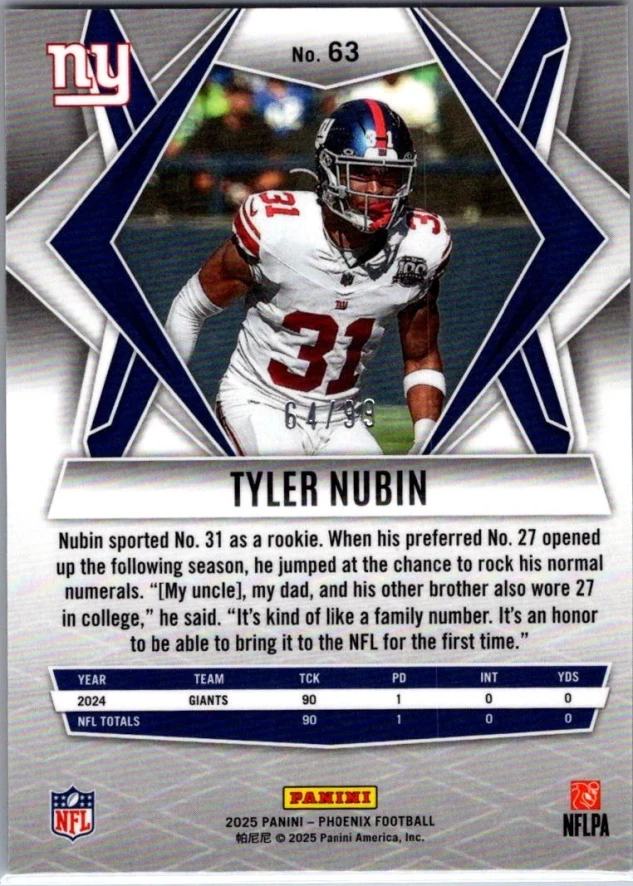 This is a nice example of a 2025 Panini Phoenix #63 Tyler Nubin Orange Winter Prizm