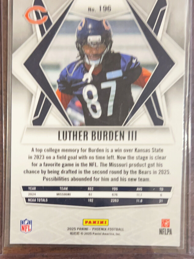 You are purchasing a 2025 Panini Phoenix Football Luther Burden III #196 RC. You will receive the exact item in the photographs. Thank you for looking.