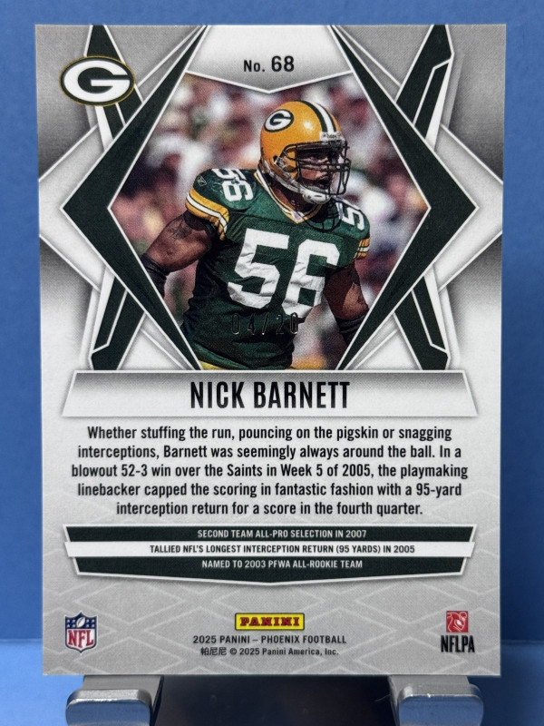 2025 Panini Phoenix Nick Barnett #68 Orange Seismic #4/20
