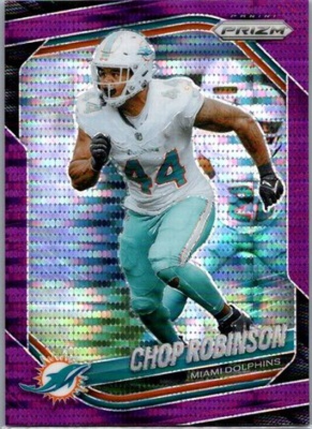 This is a nice example of a 2025 Panini Prizm #20 Chop Robinson Purple Pulsar