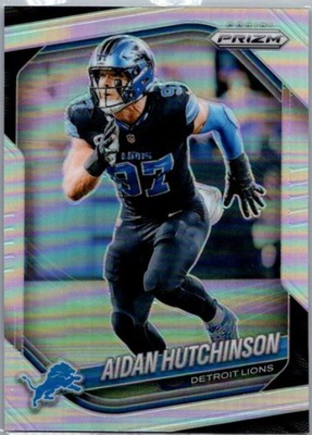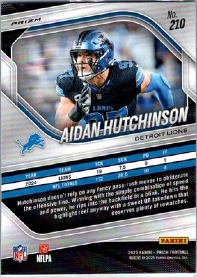 This is a nice example of a 2025 Panini Prizm #210 Aidan Hutchinson Silver