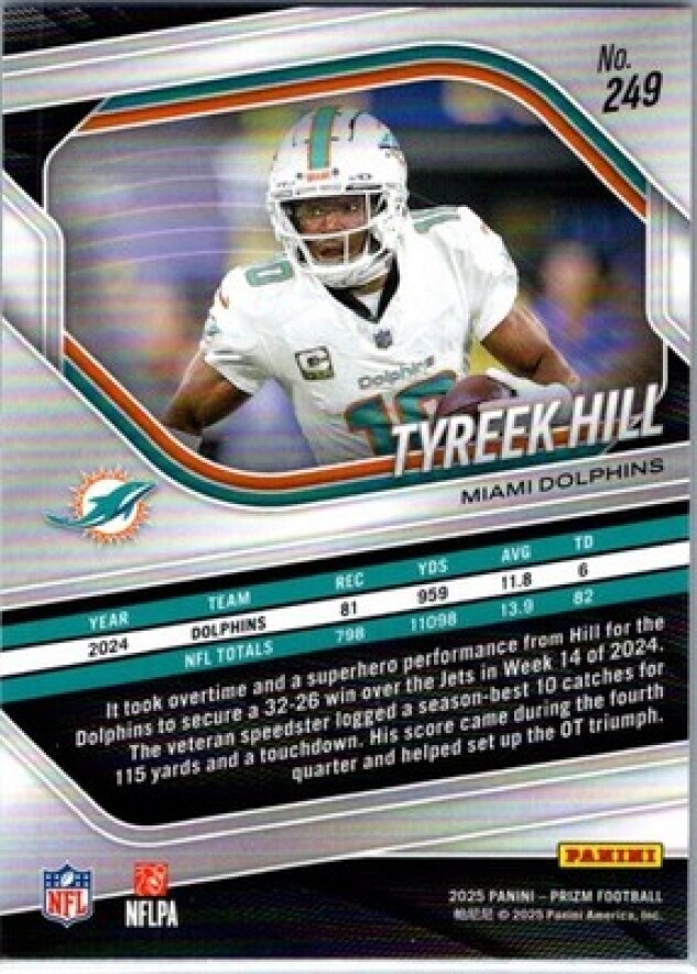 This is a nice example of a 2025 Panini Prizm #249 Tyreek Hill