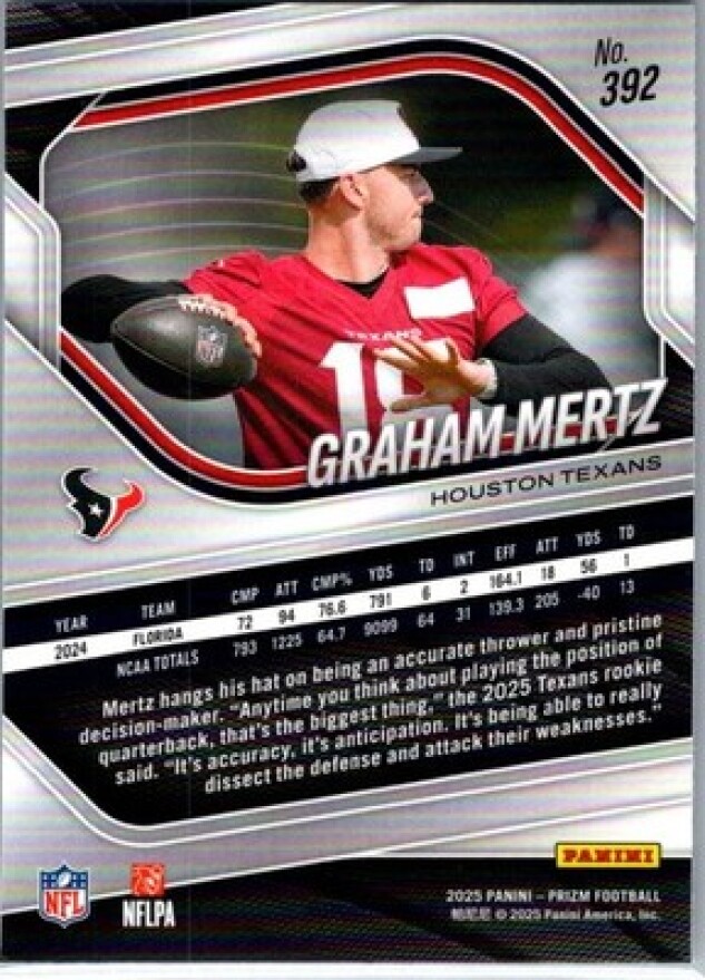 This is a nice example of a 2025 Panini Prizm #392 Graham Mertz