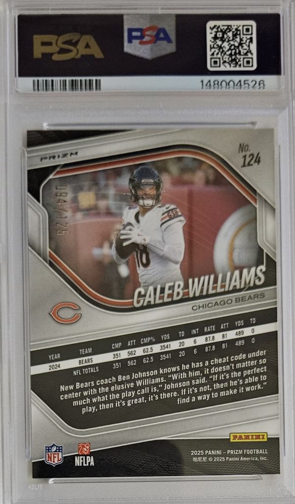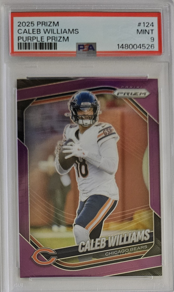 2025 Purple Prizm Caleb Williams #124. *Card will ship in a cardboard box, I do not ship using PWE or BM.