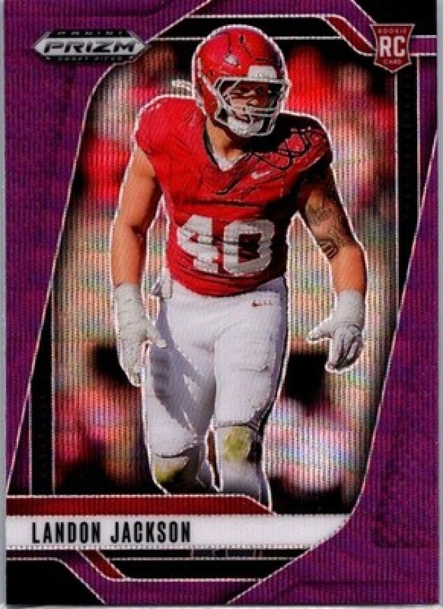 This is a nice example of a 2025 Panini Prizm Draft Picks #10 Landon Jackson Prizms Purple Wave