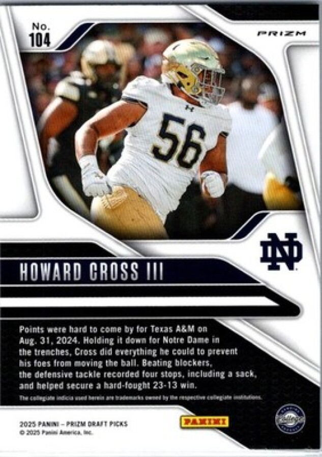 In 2025 Howard Cross III played for the Notre Dame Fighting Irish.
