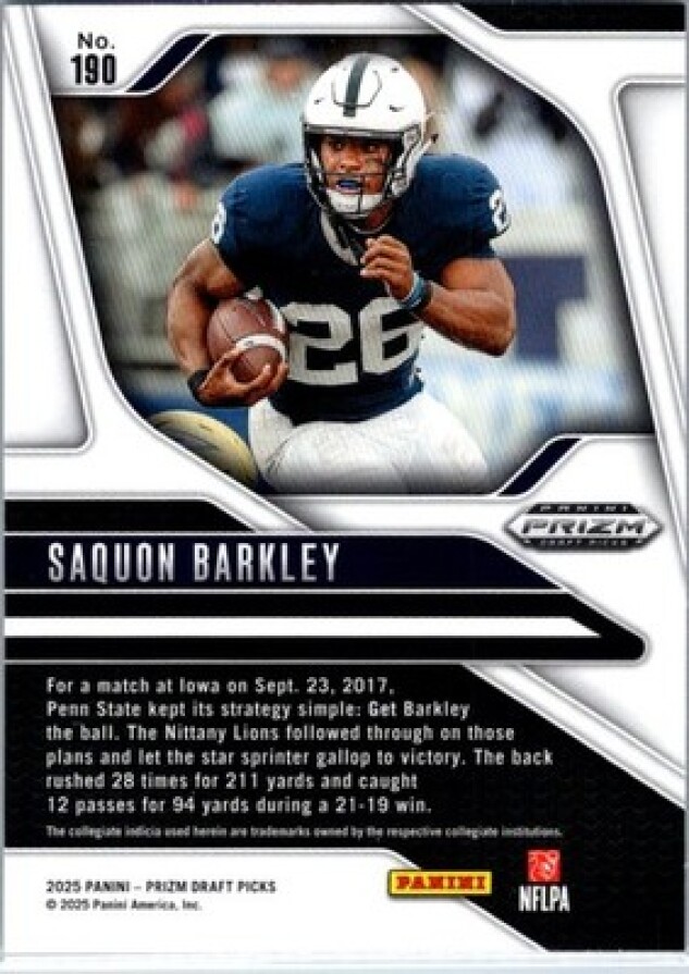This is a nice example of a 2025 Panini Prizm Draft Picks #190 Saquon Barkley