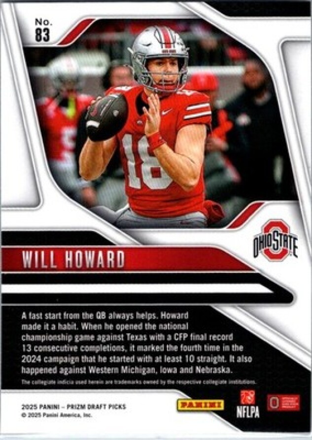 This is a nice example of a 2025 Panini Prizm Draft Picks #83 Will Howard