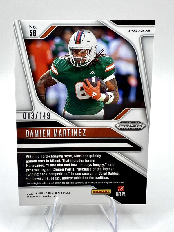 2025 Panini Prizm Draft Picks - Damien Martinez #58 Blue Ice Prizm /149 (RC)