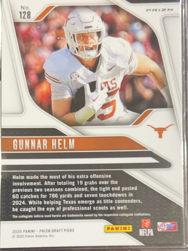 You are purchasing a 2025 Panini Prizm Draft Picks Gunnar Helm #128 Green RC. You will receive the exact item in the photographs. Thank you for looking.