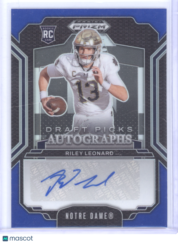 2025 Panini Prizm Draft Picks Riley Leonard #DPA-RLD Blue Autograph 50/75 RC