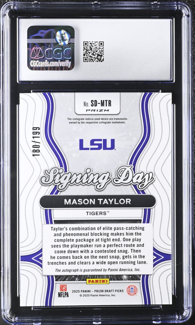 2025 Panini Prizm Draft Picks Signing Day #SD-MTR Mason Taylor CGC 10 /199