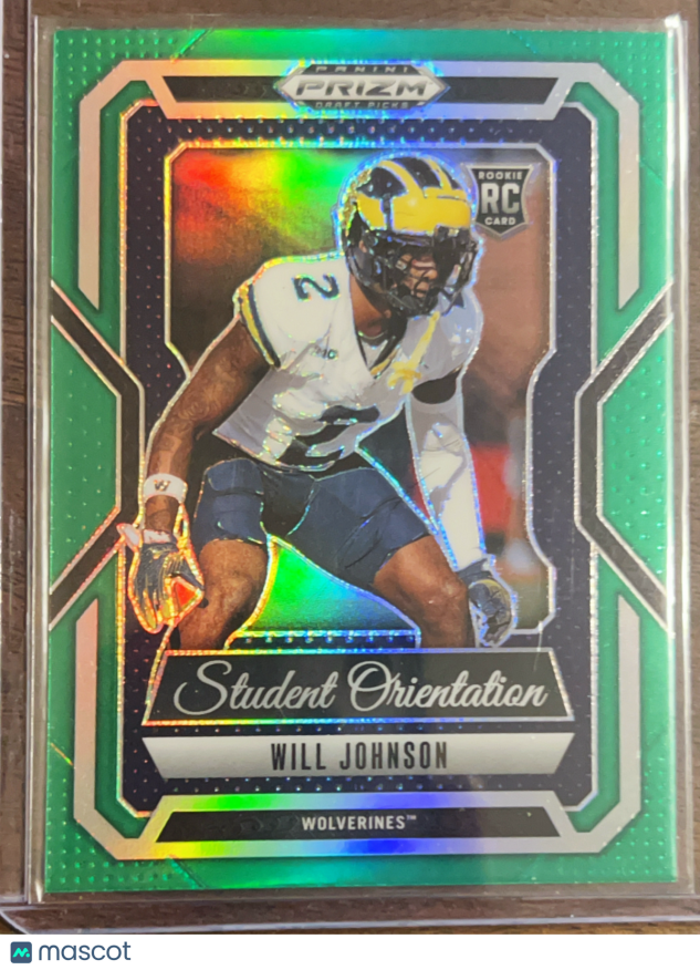 You are purchasing a 2025 Panini Prizm Draft Picks Student Orientation Will Johnson #18 Green RC. You will receive the exact item in the photographs. Thank you for looking.