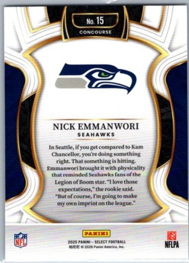 This is a nice example of a 2025 Panini Select #15 Nick Emmanwori