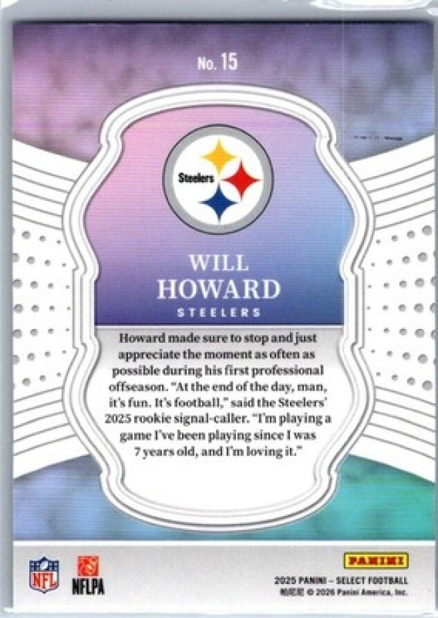 This is a nice example of a 2025 Panini Select #15 Will Howard Select Certified Rookies