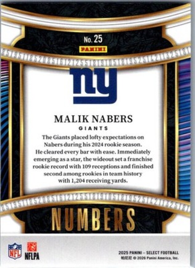 This is a nice example of a 2025 Panini Select #25 Malik Nabers Select Numbers