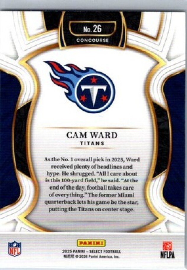 This is a nice example of a 2025 Panini Select #26 Cam Ward