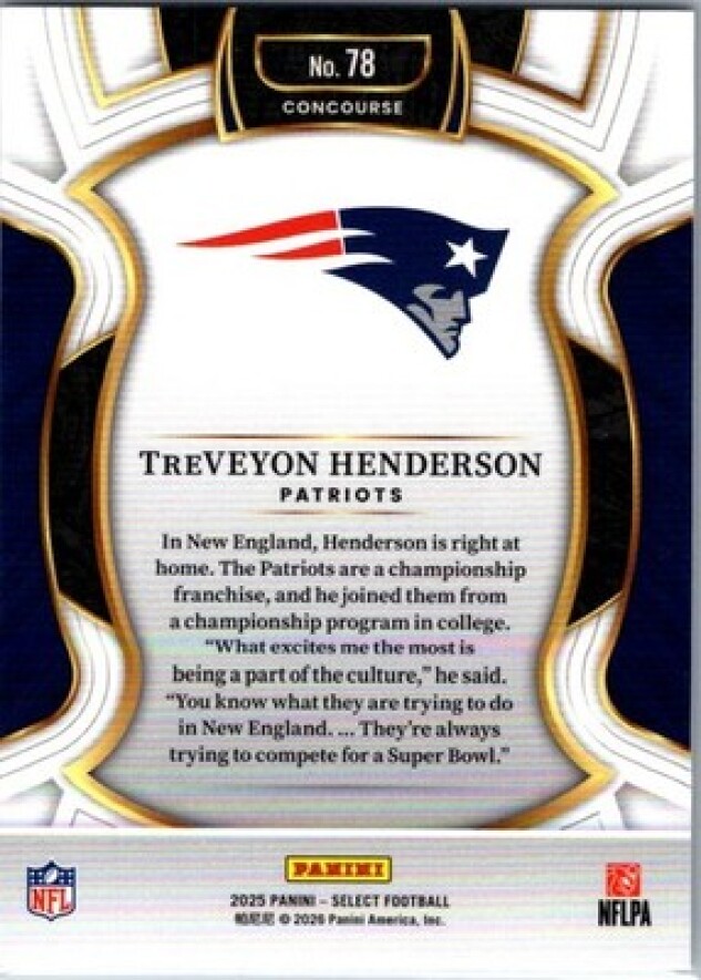 This is a nice example of a 2025 Panini Select #78 TreVeyon Henderson