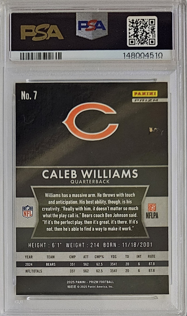 2025 Flashback Prizm Caleb Williams #7. *Card will ship in a cardboard box, I do not ship using PWE or BM.