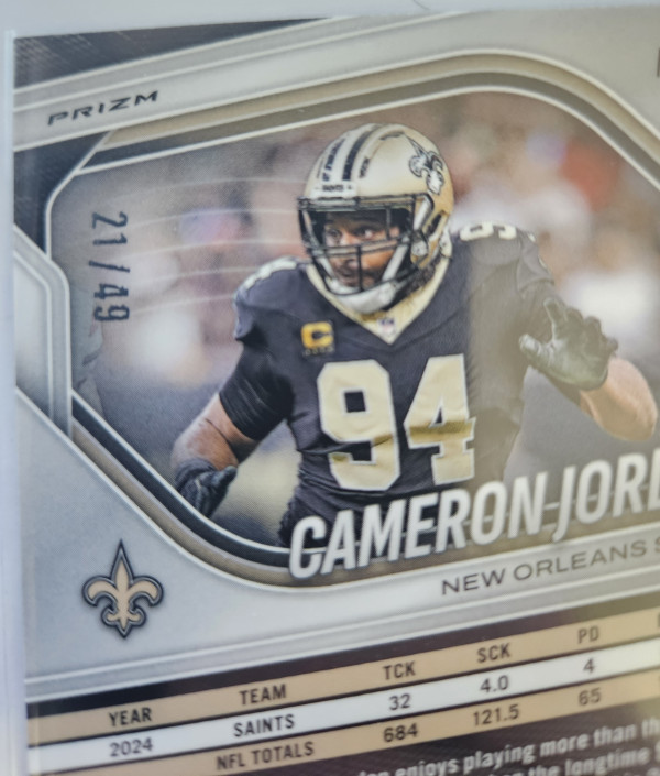 2025 Purple Checkered Prizm Cameron Jordan #199. 21/49.