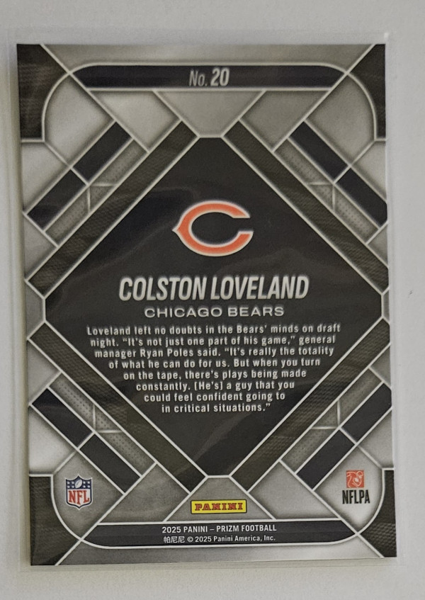 2025 Emergent Prizm Colston Loveland #20. *Card will ship in protective sleeves and a cardboard.