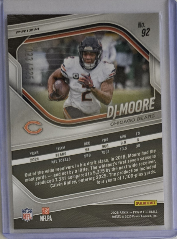 2025 Prizm Purple Cracked Ice DJ Moore #92. 23/225.