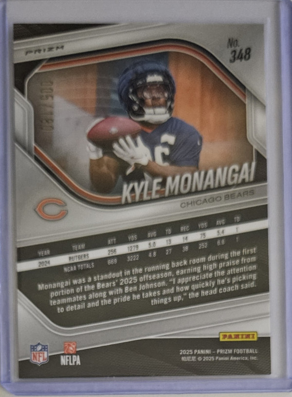 2025 Prizm Pigskin Kyle Monangai #348. 5/180.