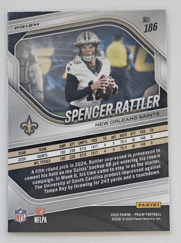 2025 Prizm Spencer Rattler #186 *Card will ship in protective sleeves and a cardboard box, I do not ship using PWE or BM.