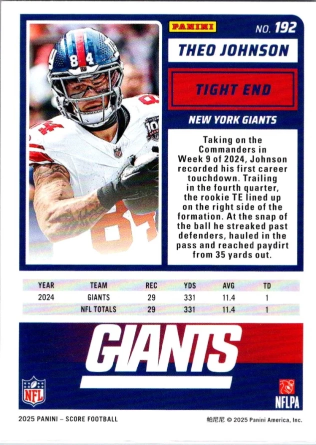 In 2025 Theo Johnson played for the New York Giants.