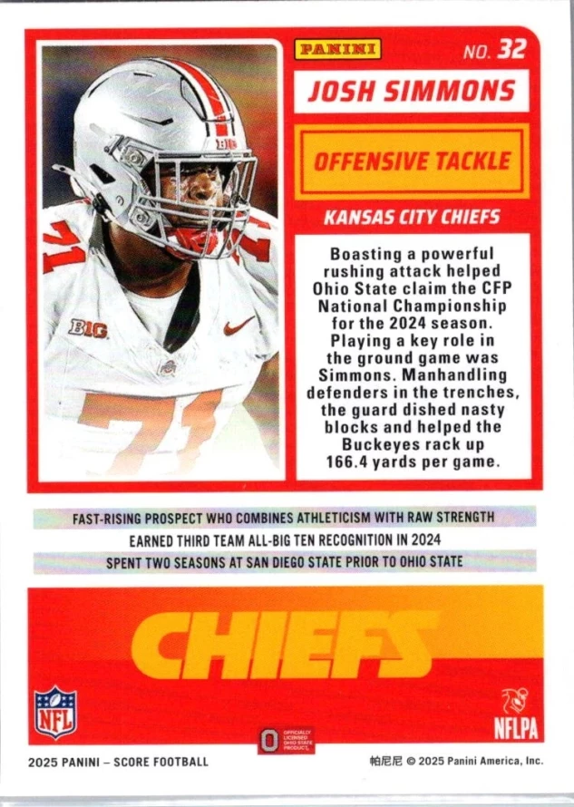 In 2025 Josh Simmons played for the Kansas City Chiefs.