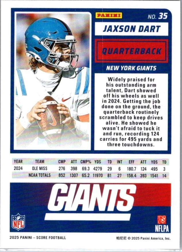 This is a nice example of a 2025 Score-A-Treat #35 Jaxson Dart