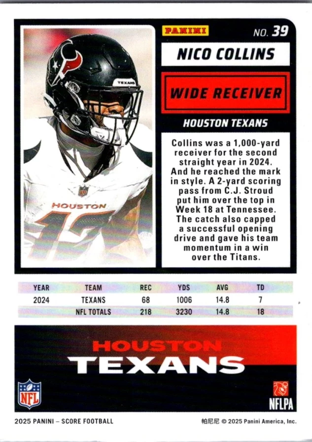 This is a nice example of a 2025 Score-A-Treat #39 Nico Collins