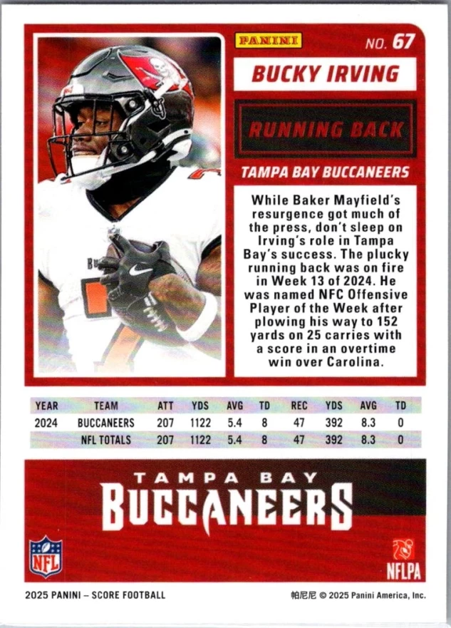 In 2025 Bucky Irving played for the Tampa Bay Buccaneers.