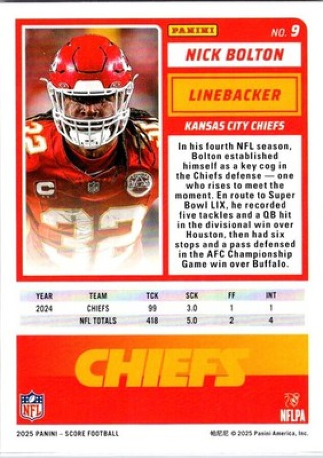 In 2025 Nick Bolton played for the Kansas City Chiefs.
