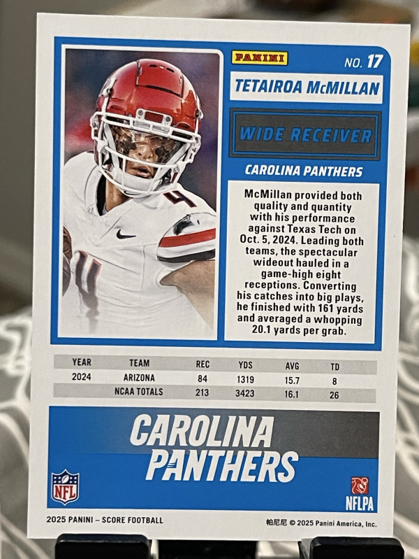2025 Score Rookies Tetairoa McMillan #17 Red (RC)