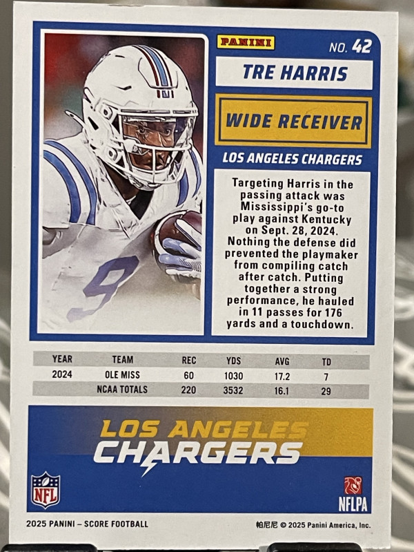 2025 Score - Rookies Tre Harris #42 Gold Zone /499 (RC)