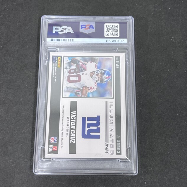 This listing features a Panini #11-VCR Victor Cruz, professionally authenticated.