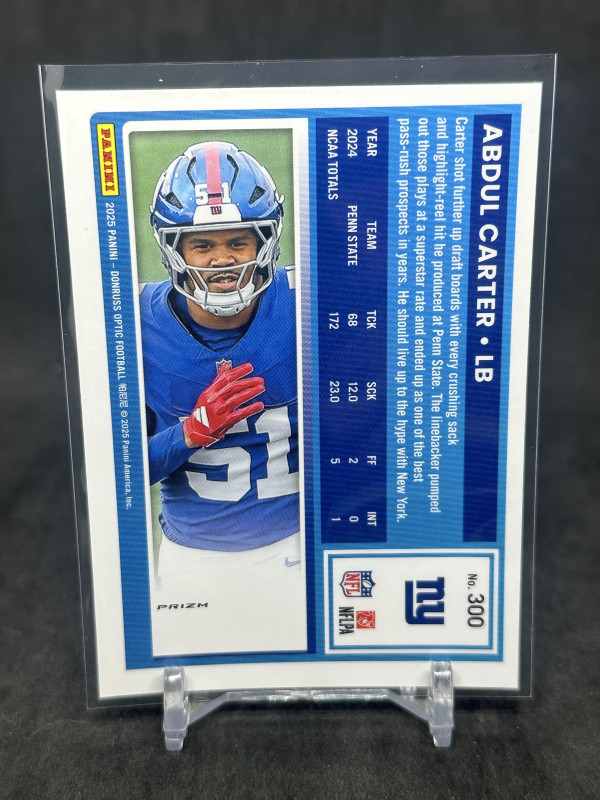 Abdul Carter 2025 Panini Donruss Optic Rated Rookie Purple Shock Prizm #300
