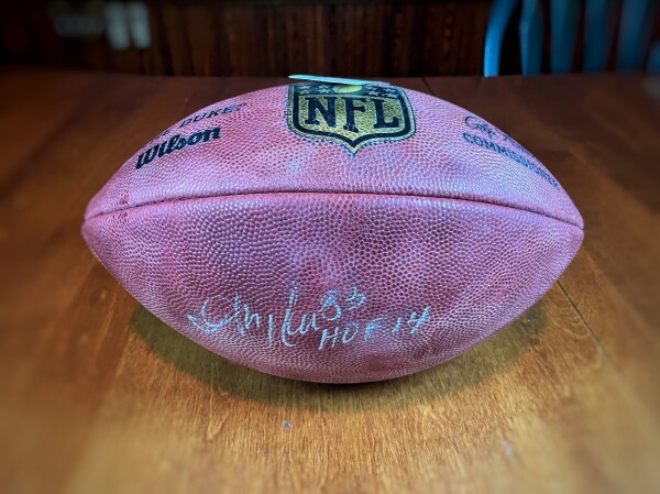 This football is in great condition although the autograph is a bit faded. This is an NFL Authentic Wilson “The Duke” football with the gold NFL logo. This ball will be packaged securely and shipped the day after ordering.