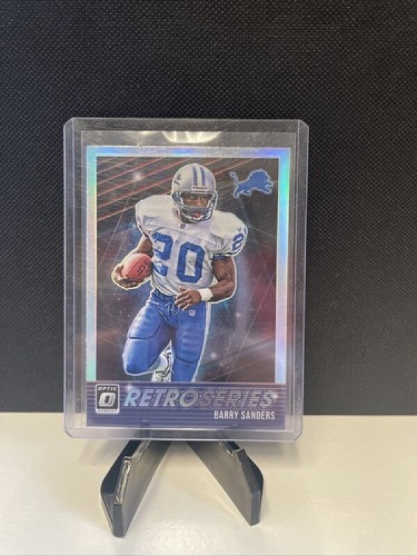 This Barry Sanders 2021 Donruss Optic Retro Series #RS-BS Holo trading card is a must-have for any Detroit Lions or football fan. The card features a stunning holo prizm design that adds a unique and valuable touch to any collection.