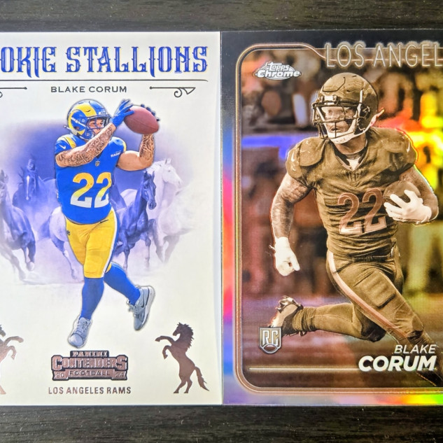 Blake Corum 2 Card Lot: Panini Contenders Rookie Stallion & Topps Chrome Sepia