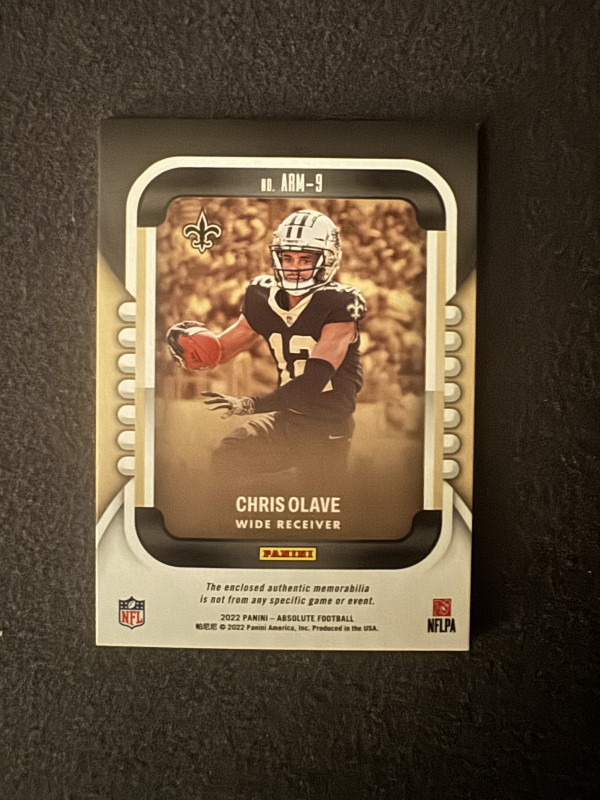Chris Olave Signed Jersey With A 2022 Panini Absolute Rookie Memorabilia Card Arm-9