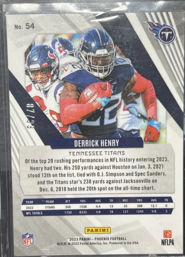 Derrick Henry Rare Card 2023 Panini Phoenix #54 Purple #/99