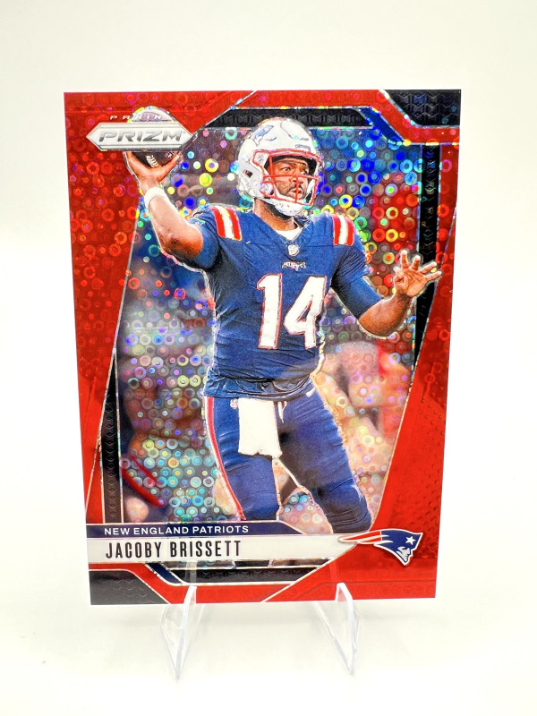 JACOBY BRISSETT 2024 PANINI PRIZM RED NO HUDDLE PATRIOTS /75